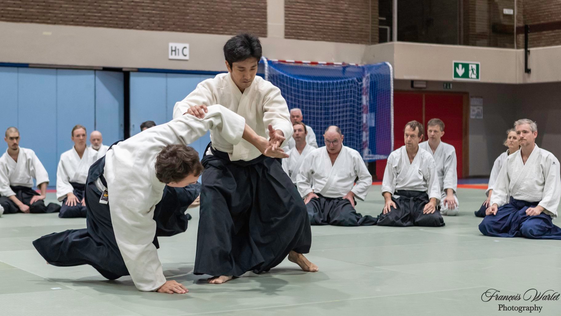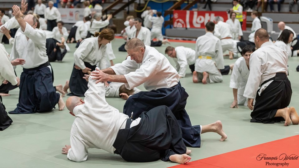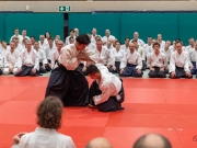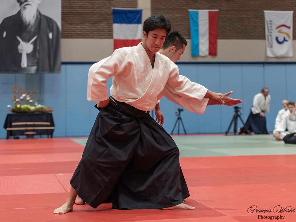 Comme il l'avait promis, Mitsuteru Ueshiba, Dojo Cho de l'Aïkikaï So Hombu, est venu au Centre ADEPS De Blocry de Louvain-La-Neuve pour un stage international. De nombreux pratiquants se sont présentés pour suivre l'enseignement du Dojo Cho. Il y avait des Français, des Italiens, des Espagnols, des Allemands, des Hollandais, des Luxembourgeois... et des Belges. Durant le stage, Dojo Cho nous expliqué, réexpliqué et démontré les techniques de bases de l'Aïkido. Les explications et les mouvements étaient claires, pures... Un travail clair que tout le monde a apprécié. La fin de journée s'est terminée par un Embukai avec des démonstrations d'adultes et d'enfants des différents dojo du pays et en conclusion, une démonstratration du Dojo Cho. Ces 2 jours, les 19 et 20 ocobre 2019, seront un bon souvenir pour tous les pratiquants : un stage avec Mitsuteru Ueshiba, Dojo Cho...le futur DOSHU.